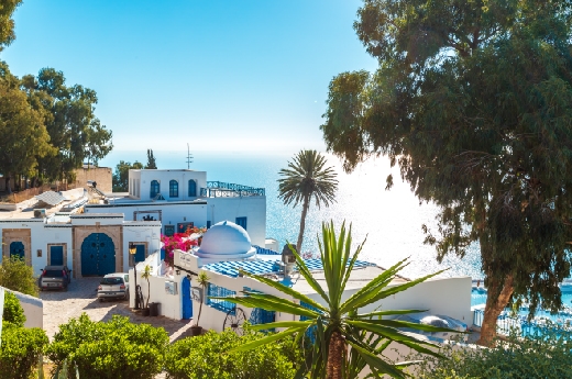 班機抵達突尼斯後,經由專人協助過關辦理簽證,隨後前往被譽為藝術家花園的西迪布蕯德。這座小鎮以白屋藍窗的建築風格聞名,是全球十大浪漫小鎮之一,百合特別安排在此享受清新薄荷茶,並特別招待每人一個巴巴洛尼。