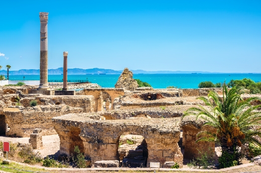 位於突尼斯市郊的迦太基遺址是世界文化遺產之一,曾是古代地中海地區最強大的文明之一,由腓尼基人於公元前9世紀建立。這座城市以其強大的海上貿易和軍事力量在古代聞名遐邇。