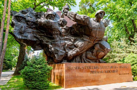 廣場中央矗立著一座紀念碑,紀念十四世紀傑出的指揮官和政治家阿米爾·帖木兒,他在從地中海到印度的廣闊領土上建立了一個由27個國家組成的中央集權國家。