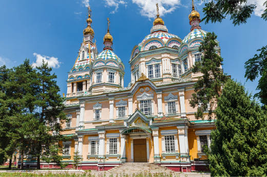 基督升天教堂建於1904年,位於阿拉木圖市中心,融合了俄羅斯、中亞和哈薩克的建築風格。教堂曾多次修繕和重建,二戰期間更被當作監獄使用。現在成為阿拉木圖市的重要旅遊景點。