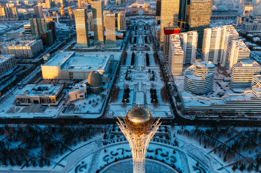 是哈薩克斯坦的首都,也是該國第二大城市,為金氏世界紀錄更名最多次的首都,是一個充滿活力和現代化的城市,以其未來主義的建築、廣闊的綠地和多元的文化而聞名。