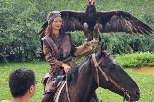 獵鷹保育訓練中心是哈薩克斯坦唯一一個猛禽保育訓練中心,培育瀕臨滅絕的獵鷹,至今已野放超過850隻。訓練師根據獵鷹的特點進行野外生存技能的培訓。不同種類的獵鷹,如獵鷹、金鷹、禿鷹、貓頭鷹等,各有特色。野放時,獵鷹總是展翅高飛,讓這片美麗的大自然更加多采多姿。