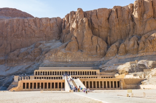 哈姬蘇是古埃及歷史上最有名的女法老王,政績斐然,是一位相當傑出英明的君主,其一生事蹟幾乎與中國的武則天女王不相上下。這座神殿的建築風格非常獨特,三層廊柱的建築傍山而建,氣宇非凡,今日看來依舊頗有現代感。