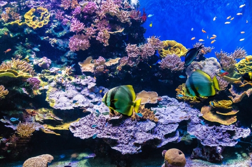紅海的水清澈湛藍,是五顏六色的珊瑚礁生長的好環境,色彩繽紛的熱帶魚悠游其間。看魚看累了,將視線轉回海岸線,只見蔚藍海水的邊緣,美麗如花園的飯店襯托在黃澄澄的沙漠與湛藍的天空間,清風徐來,令人心曠神怡。