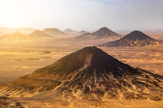 這區的沙漠地下含有豐富的鐵礦,所以在地表上散布著一層黑色粉末與石礫,呈現荒涼感,當地稱之為黑沙漠。